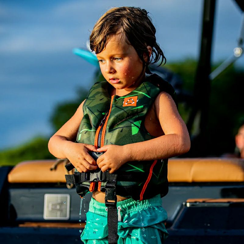 体重14kg以上のお子様に。最大限のサイズ調整が可能なエクスパンダーフィットバックと股下ベルトを備え、安全性とフィット感を両立したCGA認証キッズベスト。首元のネックサポートにより、仰向けで浮く際も頭が沈みにくく安心。大人用CGAベストと同等の柔軟性で、お子さま一人ひとりの体型に合わせた快適なパーソナルフィットと個性的なスタイルを実現します。